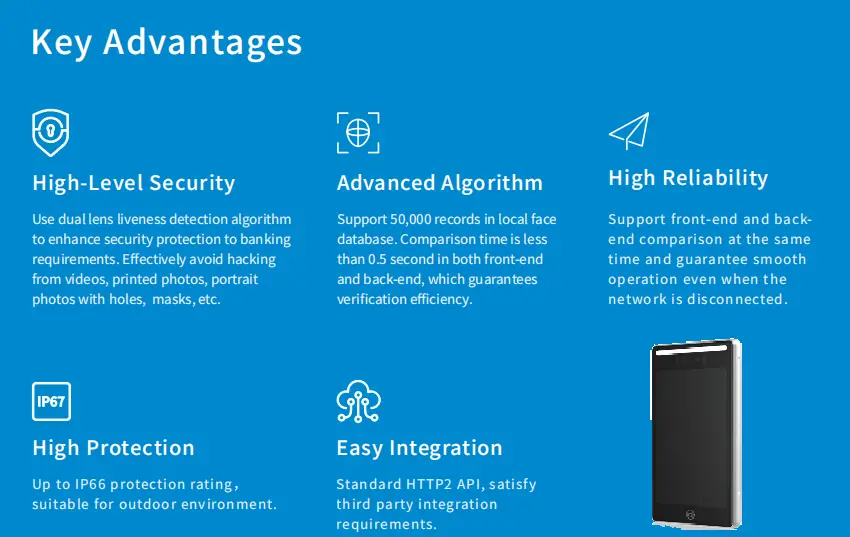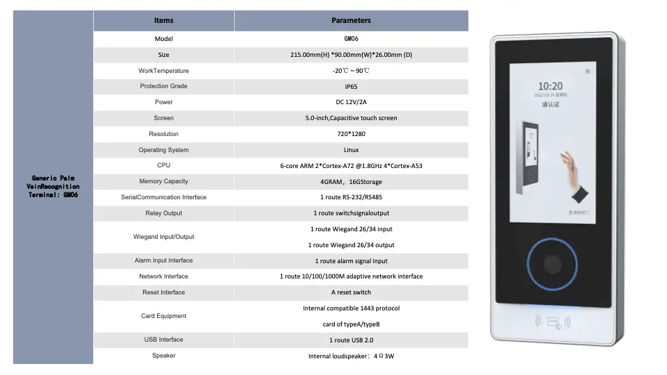 Compatible with Palmar vein, IC, ID card, scanning and face recognition,etc.