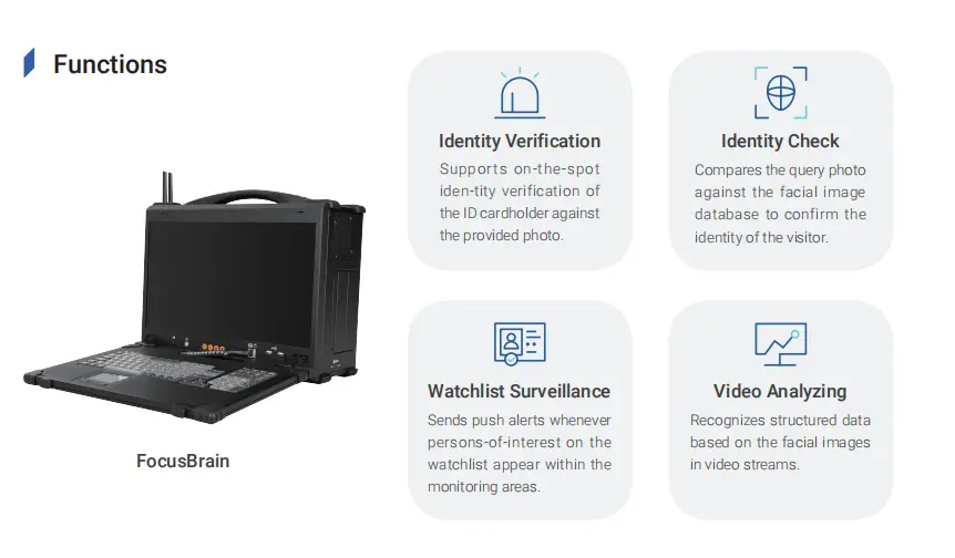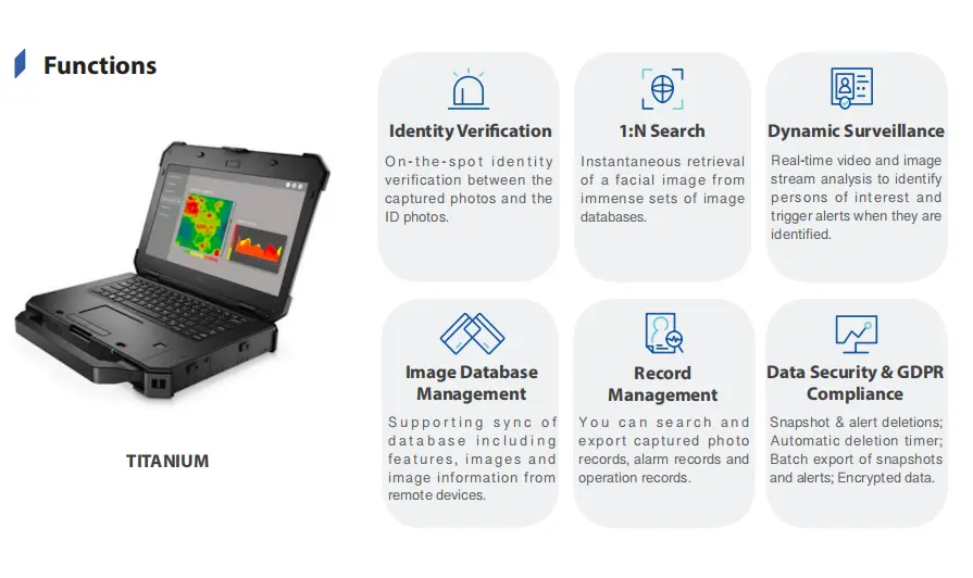 The dustproof and waterproof laptop can provide accurate face recognition and comparison service even in the most demanding conditions.